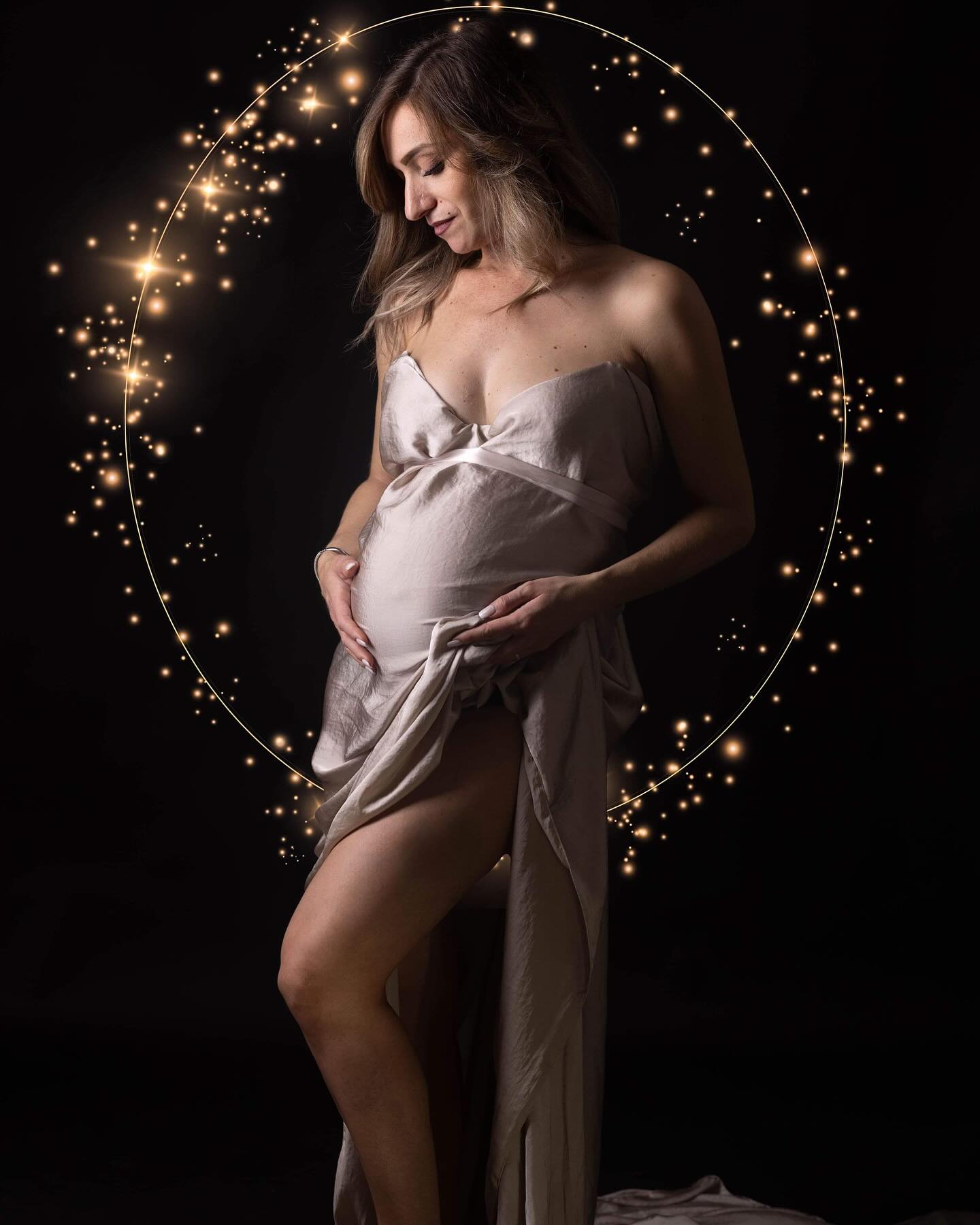 Une séance intime, douce et centrée sur la future maman.